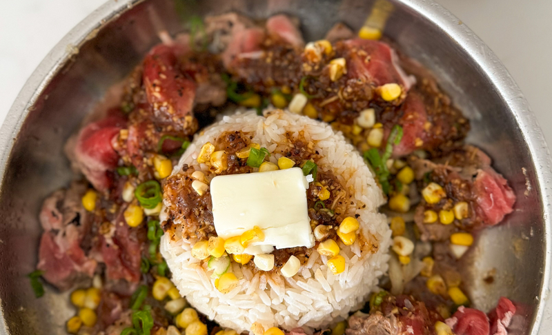 Beef Pepper Rice served straight from a hot skillet. This dish is so simple, but yet packs so much flavor and peppery kick from our newest Sizzling Black Pepper Sauce. We're confident you'll want to make this time and time again!