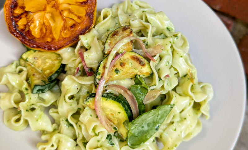 Creamy Lemon Pesto Noodle Salad