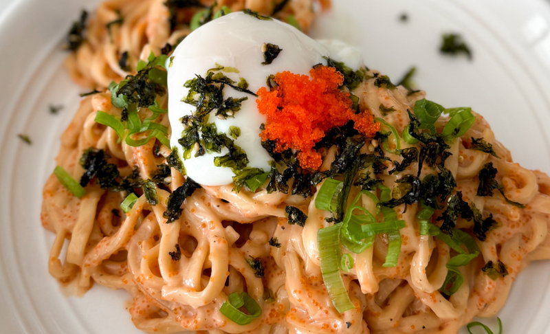 Rich, creamy, noodles packed with umami flavors- you will never believe how easy it is to make this at home! This Masago Cream Noodles is inspired by a Japanese-Italian dish called Mentaiko Pasta. It uses masago (fish roe) that adds umami, a pop of color, and amazing texture to the dish!