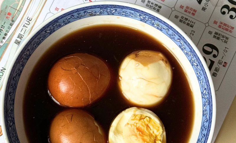 It’s reported that convenient stores in Taiwan sell tens of millions of Tea Eggs per year! They’re often described as a part of daily life as a morning cup of coffee. These eggs are steeped in their own shells along with black tea, soy sauce, Four Season Scallion Sauce, and a mix of spices.